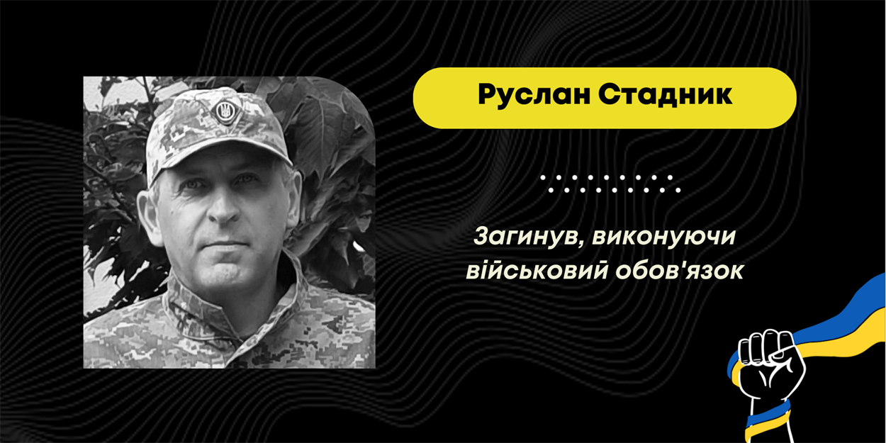 Руслан Стадник був помічником гранатометника стрілецького відділення стрілецького взводу стрілецької роти. Загинув 26 січня на 44 році життя під час ворожого танкового обстрілу поблизу села Табаївка Харківської області.